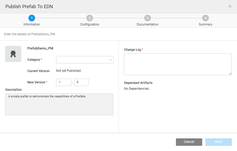 Using the Publish to EDN option from the Main Menu listed under the app name, you can make your Prefab available across all projects. Refer to Artifacts Publishing Mechanism for more details.