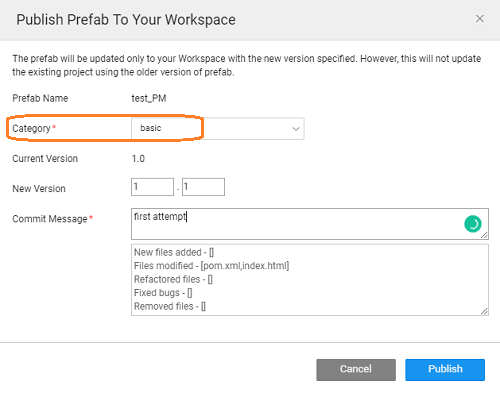 Publish to Project: Prefab can be made available to a specific project in your project workspace or network for testing purposes only.