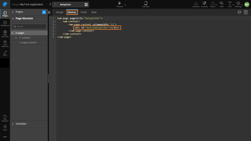 - On the main page mark the position for the display of the date-picker using a
