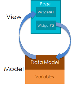 Once you have created the necessary variables (Variable Access), you can display the data or capture user input by binding data to a component/widget. The connection between a widget (or widget property) and a source of data is called the binding.
