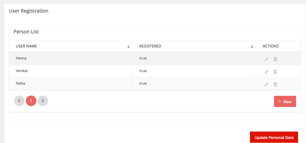 - Create a page named UserRegistration to take the basic user data for Person entity.