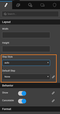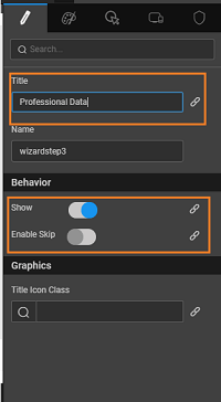 - Show: The Wizard step can be shown or hidden by checking it on/off. The step can also be shown or hidden by binding the show property to a boolean field.