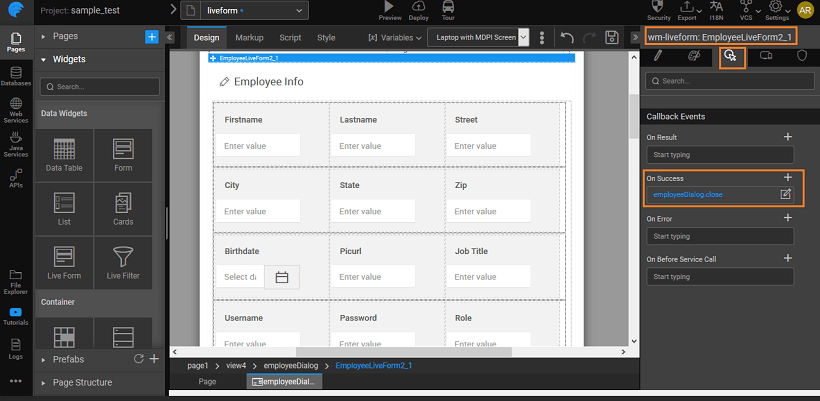 event. This means, by default, after saving the Form data, the Form dialog will close automatically. You can choose to disable this behavior by removing the On Success