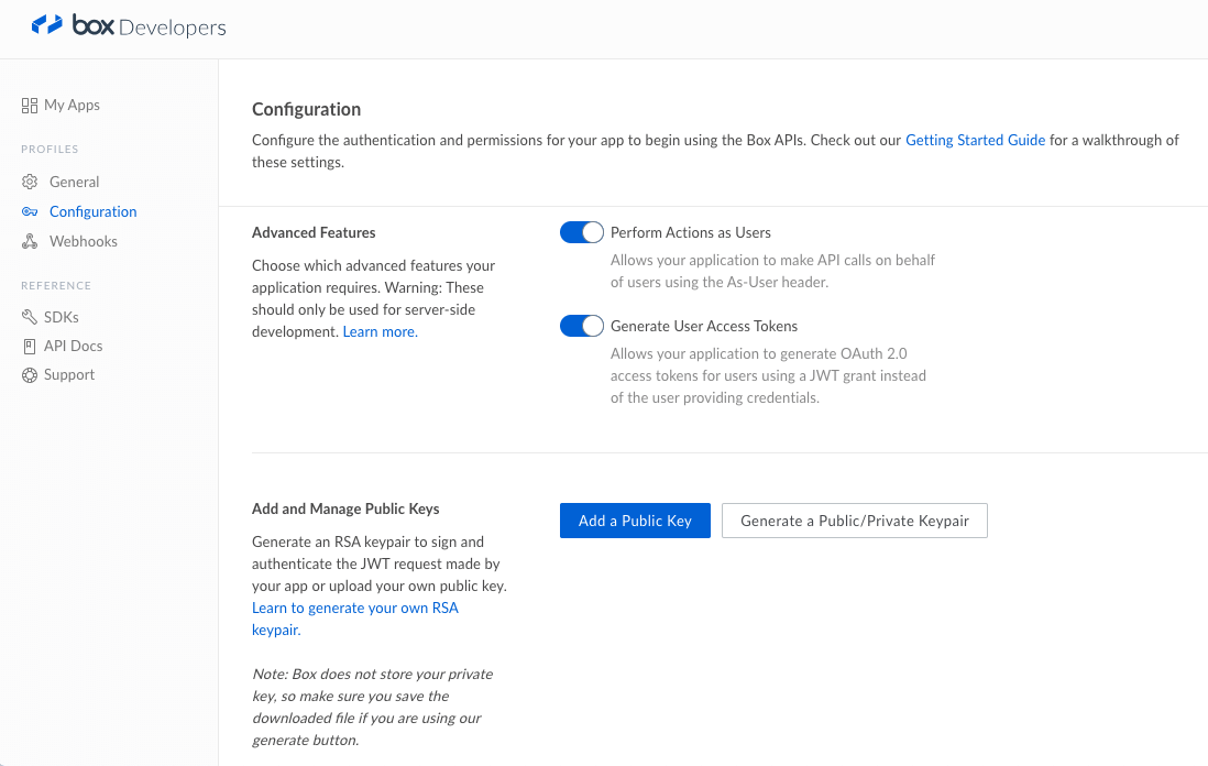 In your app’s Settings > Config profile > Box prefab > App Environment, add key-value pairs for the respective field from the downloaded App Settings json.