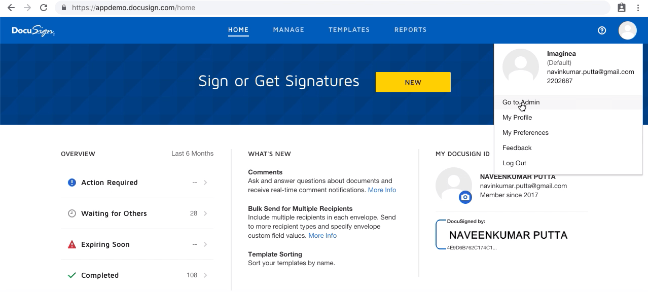 2. Docusign password: provide your password for Docusign(you can also provide the encrypted password)