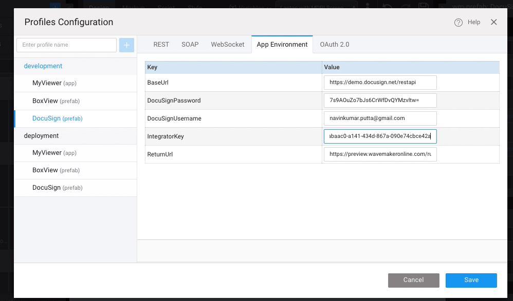 Docusign prefab allows user to enable electronic signature technology services using the Docusign API. Application using this prefab can allow it's users to electronically sign their documents for various purposes.