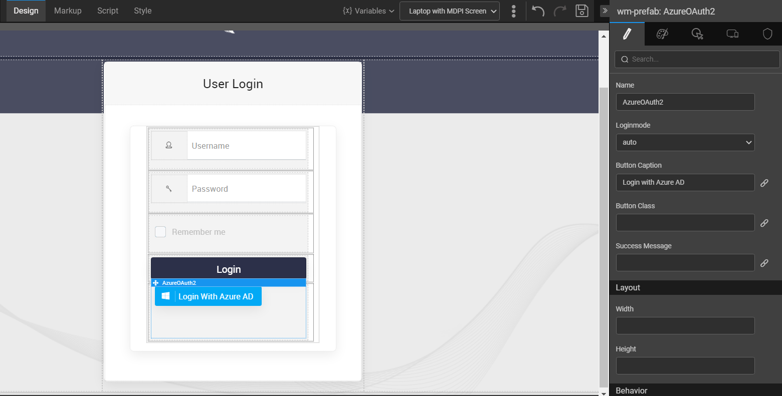 Download the prefab from Git repository Azure OAuth Prefab and import it as a prefab on your WaveMaker Studio.