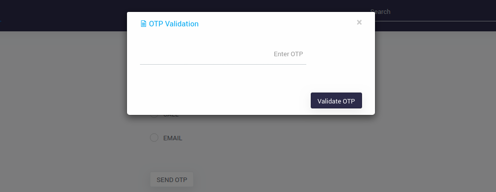 - Once the credentials are valid, OTP validation is required