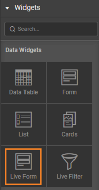 - Set the data source that the Live Form will be working on. This takes the form of a Live Variable or a selected item from a Widget like a List or a Data Table.