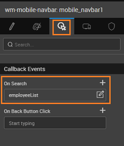 8. Select Mobile navbar, and set ‘On search’ Event to invoke employeeList