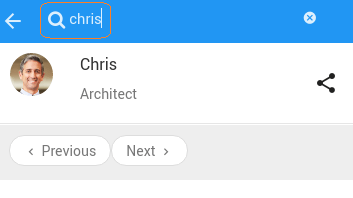 - Now, filter employee ‘Chris’ by typing ‘chris’ in search text box. That’s how search widget on mobile navbar can be used.