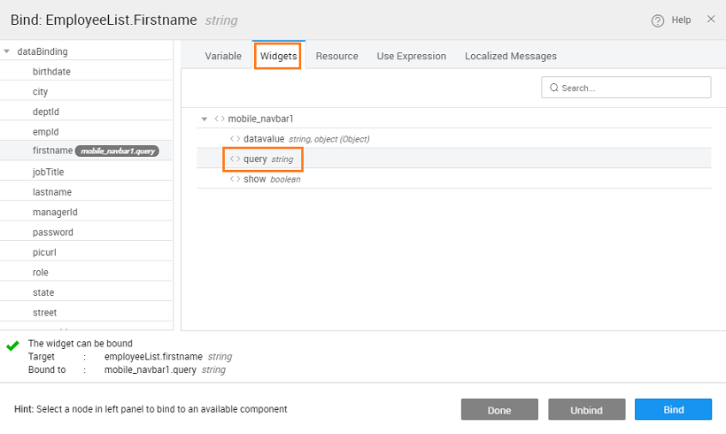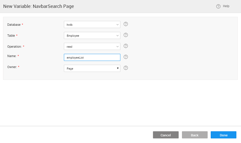 We will see how to configure the Search widget within the Navbar. We will create a list using the Employee data from sample hrdb and provide search functionality on the Employee's first name.