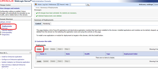 - WebLogic Server needs to installed in the system. For installation, see Oracle WebLogic Server Installers.