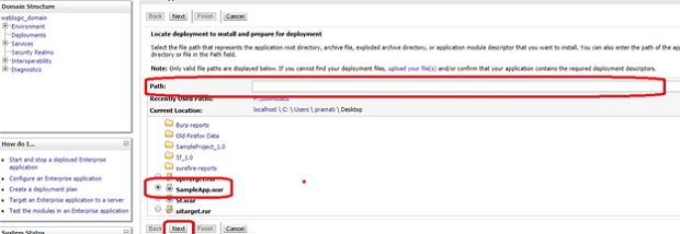 - Provide the path to the location of war file in the Path text box, select the war file and click the Next button.