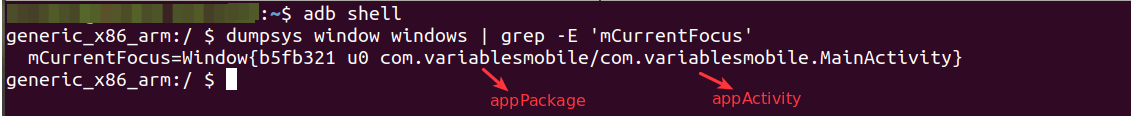 - dumpsys window windows | grep -E ‘mCurrentFocus’
