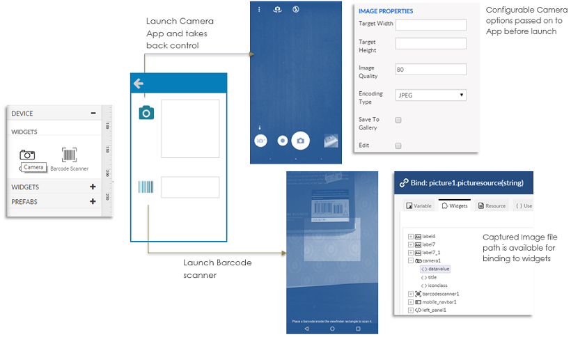 Device Widgets allow your Mobile App to take advantage of Device Functionality. Two such widgets are available: