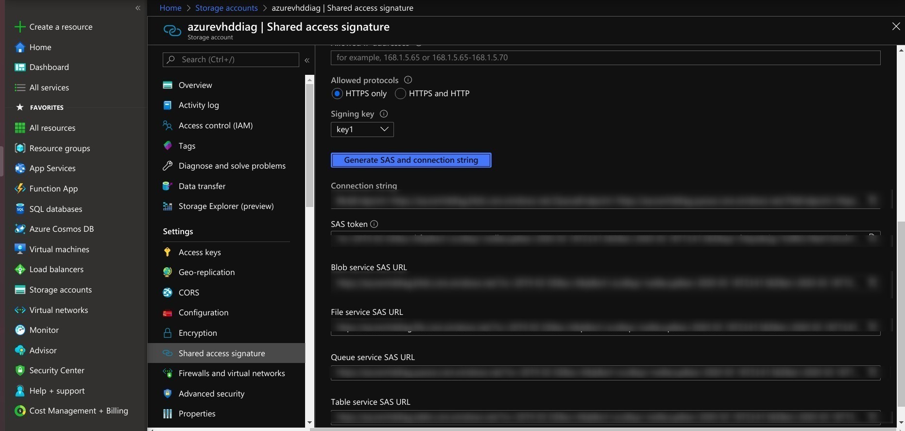 • Generate SAS in a storage account.