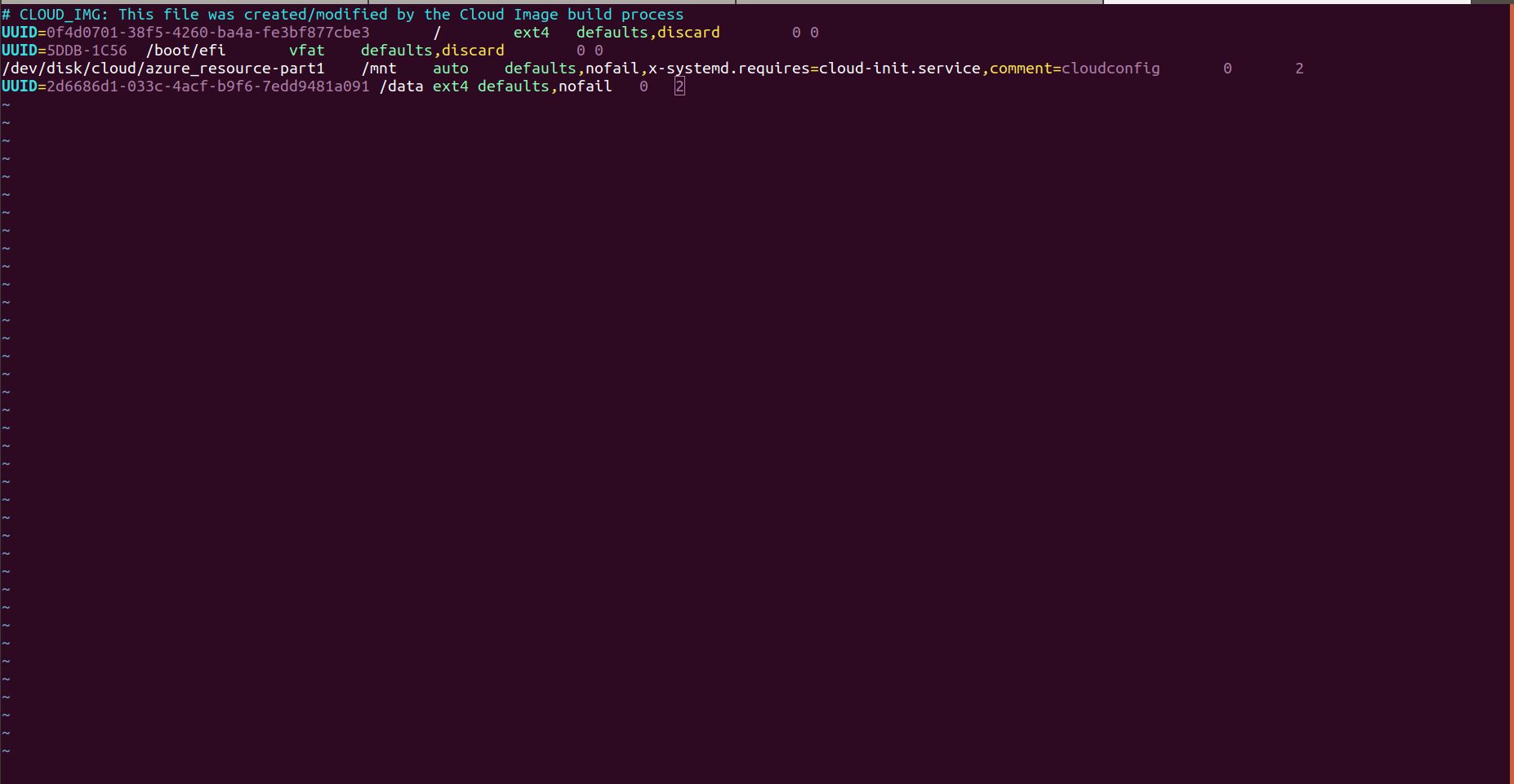 UUID=your-block-device-UUID      /data     ext4     defaults ,nofail  0  2