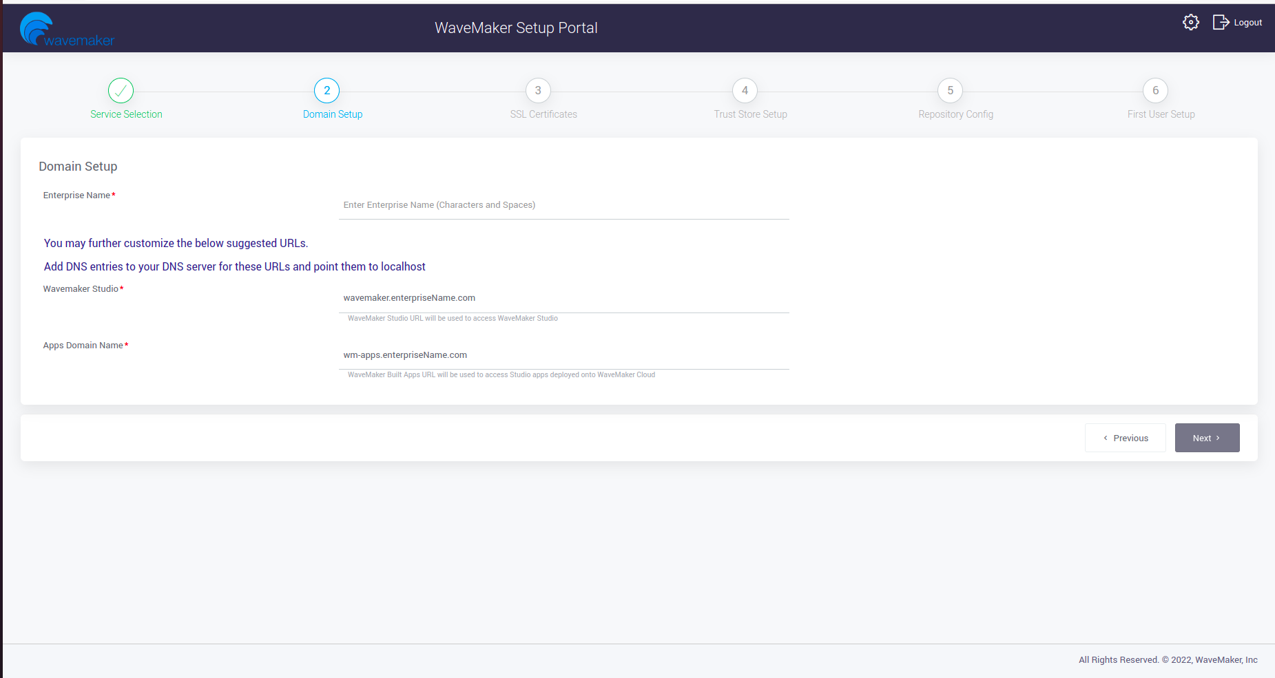 Setup domain by giving enterprise name and click on next.