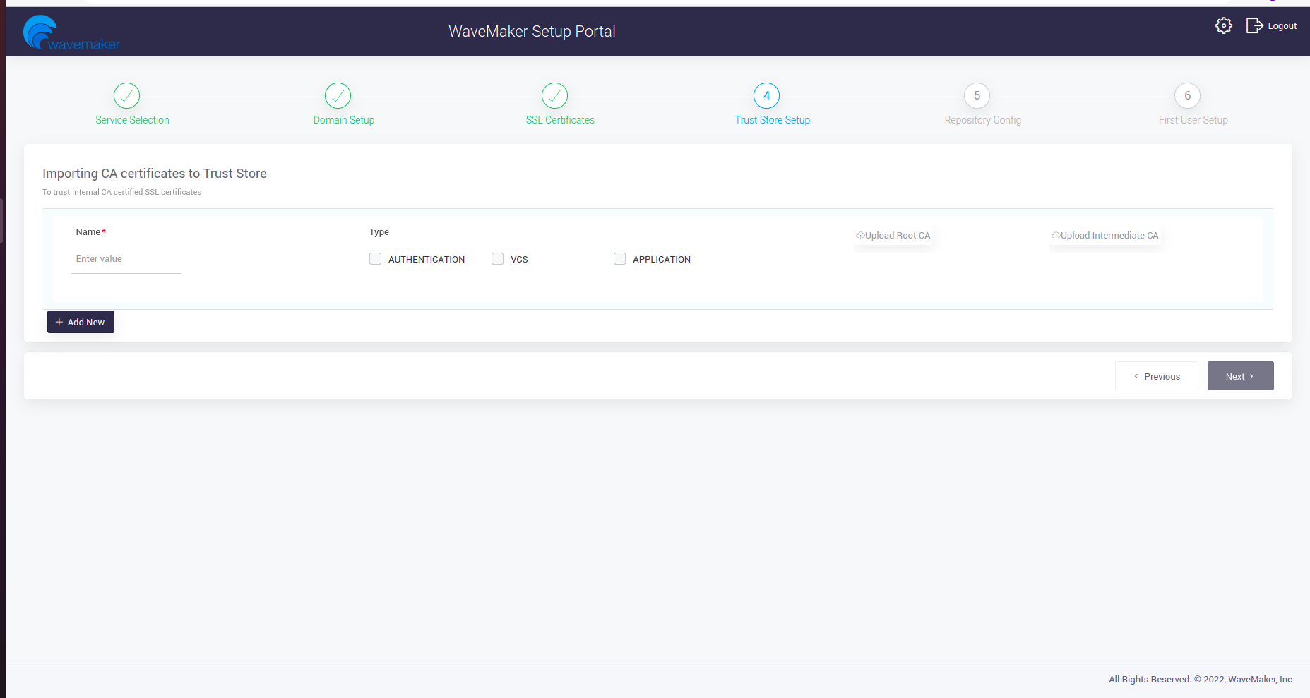 Setup password for the WaveMaker setup portal.