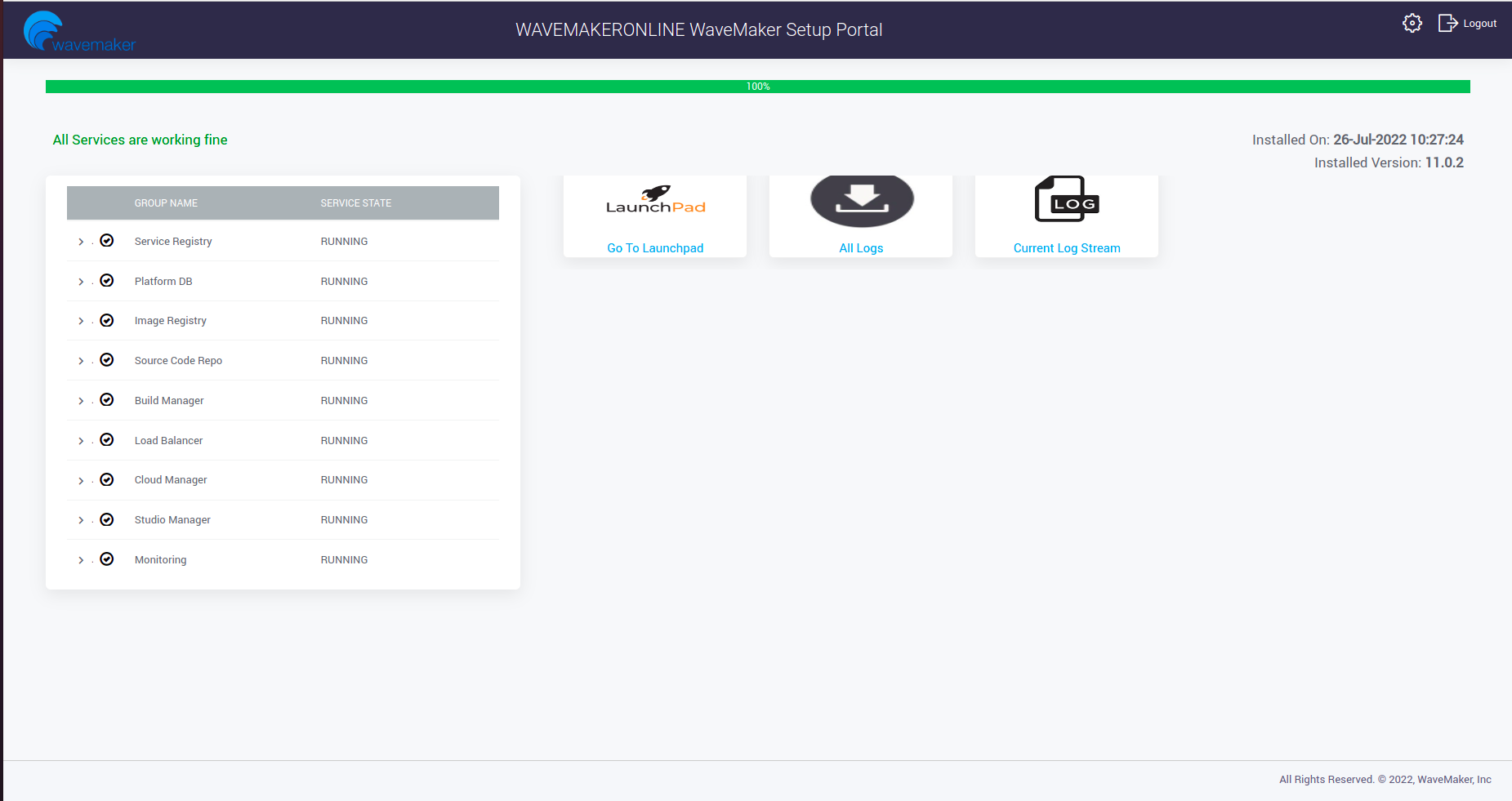 Open WaveMaker ConfigPortal by http://Platform-Instance-IP:8080